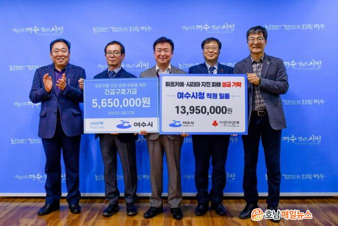 ¿©¼ö½Ã¿¡ µû¸£¸é 27ÀÏ ½ÃÀå½Ç¿¡¼ Á¤±â¸í ½ÃÀå°ú Àü³²»çȸº¹Áö°øµ¿¸ð±Ýȸ ¿À¼¼Çå ºÎÀå ¹× À¯´Ï¼¼ÇÁÇѱ¹À§¿øÈ¸ ºÎ»ê»ç¹«¼Ò ½Å´ë°â ¼ÒÀåÀÌ Âü¿©ÇÑ °¡¿îµ¥ ¼º±Ý Àü´Þ½ÄÀÌ ¿·È´Ù. 52°³ °ü°ú¼ÒÀÇ ¼º±ÝÀº Àü³²»çȸº¹Áö°øµ¿¸ð±Ýȸ·Î, 27°³ À¾¸éµ¿ÀÇ ¼º±ÝÀº À¯´Ï¼¼ÇÁÇѱ¹À§¿øÈ¸·Î Àü´ÞÇß´Ù.