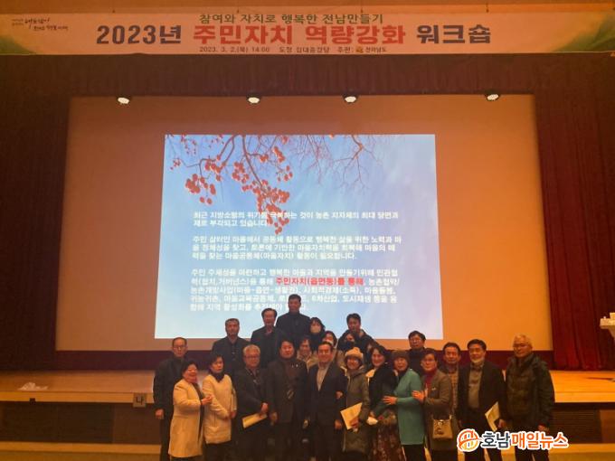 ÁÖ¹ÎÀÚÄ¡ ¿ª·®°È ¿öÅ©¼óÀº Àü¶ó³²µµ ÁÖÃÖ·Î Àü³² 22°³ ½Ã±ºÀÇ ÁÖ¹ÎÀÚÄ¡À§¿ø‧¾÷¹« ´ã´çÀÚ µîÀÌ ¸ð¿© ÁÖ¹ÎÀÚÄ¡ Ȱµ¿ ¿ì¼ö»ç·Ê¸¦ °øÀ¯Çϰí ÁÖ¹ÎÀÚÄ¡ÀÇ ¿ªÇÒ°ú ³ª¾Æ°¥ ¹æÇ⼺¿¡ ´ëÇØ ±³À°ÀÌ ÁøÇàµÆ´Ù.