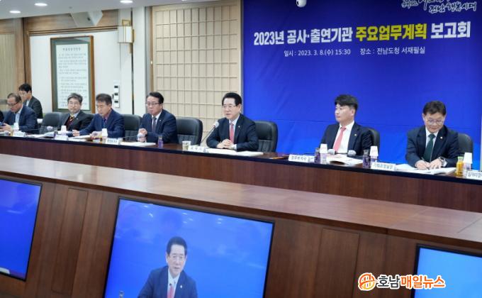 À̳¯ º¸°íȸ´Â Àü³²°³¹ß°ø»ç¸¦ ºñ·ÔÇÑ µµ »êÇÏ 18°³ °ø°ø±â°üÀÌ ½Å±Ô․¿ªÁ¡»ç¾÷ µî Çö¾È»çÇ×À» µµ °ü·Ã ½Ç±¹Àå µî°ú °øÀ¯Çϰí À̸¦ µµÁ¤ ¼º°ú·Î ¿¬°èÇϱâ À§ÇÑ Åä·Ð Çü½ÄÀ¸·Î ÁøÇàµÆ´Ù.