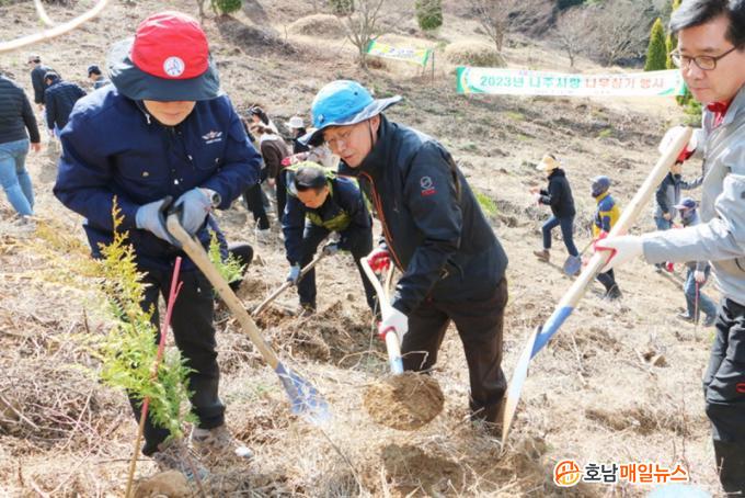 ÇÑÆí, À±º´Å ³ªÁÖ½ÃÀåÀº ¡°³ª¹«½É±â´Â ¾î¸° ½ÃÀýºÎÅÍ Âü¿©ÇÏ´Â ÀÇ¹Ì ÀÖ´Â Çà»ç·Î ¿ì¸®³ª¶ó°¡ ªÀº ±â°£ Á¶¸² »ç¾÷¿¡ ¼º°øÇÒ ¼ö ÀÖ¾ú´ø ¿øµ¿·Â¡±À̶ó¸ç ¡°30³â ÈÄ ´Ù ÀÚ¶õ Æí¹é³ª¹«µéÀÌ °í¼Óµµ·Îº¯ °æ°ü ¸í¼Ò°¡ µÇ°í ³ª¾Æ°¡ »ç°èÀý ¸¼Àº °ø±â¸¦ ³»»Õ´Â ÄèÀûÇÑ »ê¸² °ø°£ÀÌ µÉ °ÍÀ¸·Î ±â´ëÇÑ´Ù¡±°í ¸»Çß´Ù.