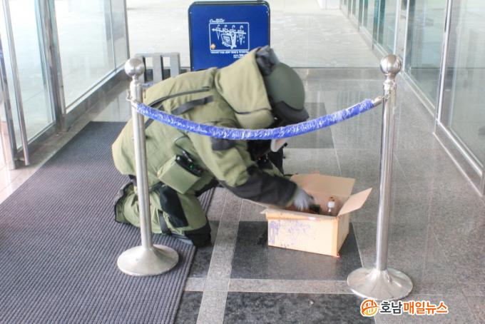 ÈÆ·ÃÀº Å×·¯°¡ ÀǽɵǴ ¿ìÆí¹°ÀÌ ÀÖ´Ù´Â 112½Å°í¸¦ ½ÃÀÛÀ¸·Î °æÂûÀÌ ÇöÀå¿¡ Ã⵿ÇÏ¿© °ü°è±â°ü°ú ÇÕµ¿´ëÀÀÆÀÀ» ±¸¼º, ½Å°íµÈ ¿ìÆí¹°¿¡ ´ëÇØ Å×·¯ °ü·Ã¼ºÀ» ½Äº°ÇÏ´Â °úÁ¤À¸·Î ÁøÇàµÇ¾ú´Ù. ½Äº°ÀÌ ¾î·Á¿î ¹°Áú¿¡ ´ëÇØ¼´Â ºÐ¼®ÀÌ °¡´ÉÇÑ ±â°üÀ¸·Î ½Å¼ÓÈ÷ À̼ۡ¤Ã³¸®ÇÏ´Â Çù¾÷ü°è ÈÆ·Ãµµ µ¿½Ã¿¡ ÀÌ·ç¾îÁ³´Ù.