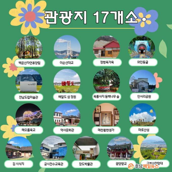 ÁöÁ¤ °ü±¤Áö´Â ¡â¹é¿î»êÀÚ¿¬È޾縲 ¡â¿Á·æ»çµ¿¹é³ª¹«½£ ¡â¸ÅõȲÇö»ý°¡ ¡â±¤¾ç±Ã½ÃÀü¼ö±³À°°ü ¡â±¤¾çÇâ±³ ¡â¸¶·Î»ê¼º ¡âÀμ¸®°ø¿ø ¡âÀü³²µµ¸³¹Ì¼ú°ü ¡â±¤¾ç¿ª»ç¹®È°ü ¡â±¤¾çÀåµµ¹Ú¹°°ü ¡â±¤¾ç¿ÍÀε¿±¼ ¡â±¸ºÀ»êÀü¸Á´ë ¡âÀ̼ø½Å´ë±³(¹¦µµÈÞ°Ô¼Ò) ¡âÇØ¿À¸§À°±³ ¡â±è½Ã½ÄÁö ¡â¹è¾Ëµµ ¼¶ Á¤¿ø ¡âÀ±µ¿ÁÖ À¯°í º¸Á¸ Á¤º´¿í °¡¿Á µîÀÌ´Ù. ±âŸ ÀÚ¼¼ÇÑ »çÇ×Àº ±¤¾ç½Ãû ¹®È°ü±¤È¨ÆäÀÌÁö °ü±¤¾È³» ÄÚ³ÊÀÇ ½ºÅÆÇÁ Åõ¾î¸¦ Âü°íÇÏ¸é µÈ´Ù.