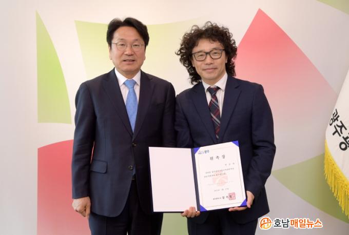 °±âÁ¤ ±¤ÁÖ±¤¿ª½ÃÀåÀº 17ÀÏ ½Ãû Á¢°ß½Ç¿¡¼ ½Ã¸³±¹¾Ç°üÇö¾Ç´Ü »óÀÓÁöÈÖÀÚ¿¡ ¼±ÀÓµÈ ¹Ú½ÂÈñ ÁöÈÖÀÚ¿¡°Ô À§ÃËÀåÀ» ¼ö¿©Çß´Ù.