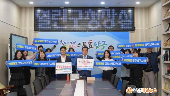 24ÀÏ ³²±¸¿¡ µû¸£¸é ³²±¸Ã» °ø¹«¿ø 30¸íÀº À̳¯ ¿ÀÀü ³ªÁֽÿ¡ °íÇâ»ç¶û ±âºÎ±Ý 300¸¸¿øÀ» ±âŹÇÑ µÚ ¾ç Áö¿ªÀÇ »óÈ£¹ßÀüÀ» ÀÀ¿øÇÏ´Â ¸Þ½ÃÁö¸¦ Àü´ÞÇß´Ù. °°Àº ³¯ À±º´Å ³ªÁÖ½ÃÀåÀ» ºñ·ÔÇØ ³ªÁÖ½Ãû °øÁ÷ÀÚ 30¸íµµ ÀÌ¿¡ ´ëÇÑ È´äÀ¸·Î ³²±¸¿¡ °íÇâ»ç¶û ±âºÎ±Ý 300¸¸¿ø°ú ÇÔ²² ÀÀ¿øÀÇ ¸Þ½ÃÁö¸¦ º¸³Â´Ù.