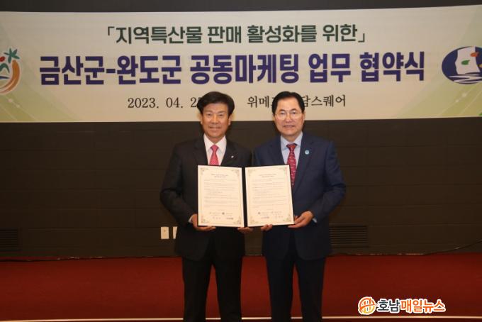 ¿Ïµµ±º(±º¼ö ½Å¿ìö)°ú ±Ý»ê±º(±º¼ö ¹Ú¹üÀÎ)Àº ¾÷¹« Çù¾àÀ» ÅëÇØ ¿ÏµµÀüº¹°ú ±Ý»ê ÀÎ»ï µî Æ¯»ê¹° ÆÇ¸Å Ȱ¼ºÈ¸¦ À§ÇØ ±¹³»¿Ü °øµ¿ ¸¶ÄÉÆÃÀ» ÃßÁøÇϰí, Áö¿ª Ư»ê¹°À» Ȱ¿ëÇÑ Á¦Ç° °³¹ß, Áö¿ª ÃàÁ¦ °³ÃÖ ½Ã »óÈ£ ±³·ù µî¿¡ ÇùÁ¶Çϱâ·Î Çß´Ù.