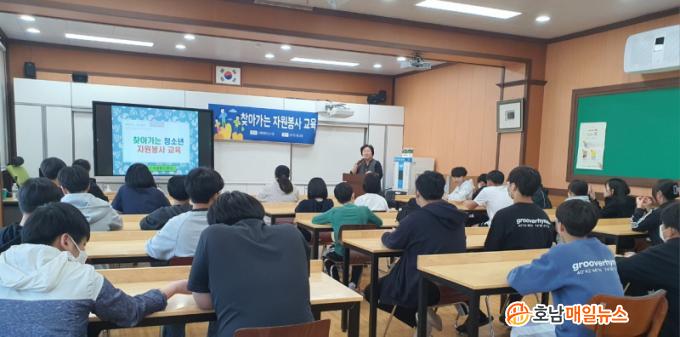 ÇÑÆí, Ȳ¹Ì°æ ±¸·Ê±ºÀÚ¿øºÀ»ç¼¾ÅÍÀåÀº À̹ø ã¾Æ°¡´Â û¼Ò³â ÀÚ¿øºÀ»ç ±³½ÇÀ» ÅëÇØ ÇлýµéÀÌ ÀÚ¿øºÀ»ç¿¡ ´ëÇÑ ¿Ã¹Ù¸¥ ÀνÄÀ» °®°í ºÀ»çȰµ¿¿¡ Àû±ØÀûÀ¸·Î Âü¿©Çϱ⸦ ¹Ù¶õ´Ù¶ó°í ¸»Çß´Ù.