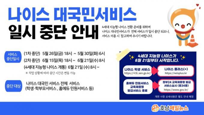 À̹ø ÀϽà Áß´ÜÀº ±³À°ºÎ¿¡¼ ±³À°ÇàÁ¤¾÷¹« È¿À²¼º Çâ»ó ¹× ±³À°°ü·Ã ´ë±¹¹Î¼ºñ½º ÆíÀǼº °È¸¦ À§ÇØ 4¼¼´ë Áö´ÉÇü ³ªÀ̽º ÀüȯÀ» ÁغñÇÏ´Â °³Æí ÀÛ¾÷À» ÇÏ´Â µ¥ µû¸¥ °ÍÀÌ´Ù.