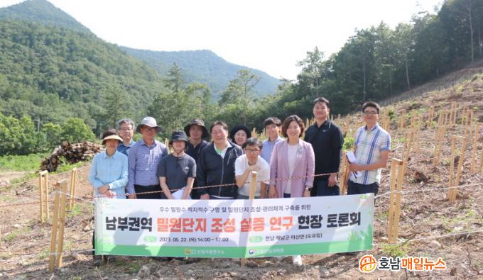 ¿Àµæ½Ç Àü³²µµ»ê¸²ÀÚ¿ø¿¬±¸¼ÒÀåÀº ¡°¿ì¼öÇÑ ¹Ð¿øÀÚ¿ø ¹ß±¼°ú ¹Ð¿ø ½£À» Á¶¼ºÇÏ¸é ²Ü¹ú»ê¾÷°ú »ýŰ踦 ¸ðµÎ °Ç°ÇÏ°Ô ¸¸µé ¼ö ÀÖ´Ù¡±¸ç ¡°¹Ð¿ø´ÜÁöÀÇ È¿À²Àû ¹èÄ¡ °ü¸® ¹æ¾È ¸¶·ÃÀ» ÅëÇØ ¹Ð¿ø »ý»ê¼º Áõ´ë¿Í ¾ÈÁ¤Àû ¼ÒµæÃ¢Ãâ ±â¹ÝÀ» È®¸³Çϰڴ١±°í ¸»Çß´Ù.