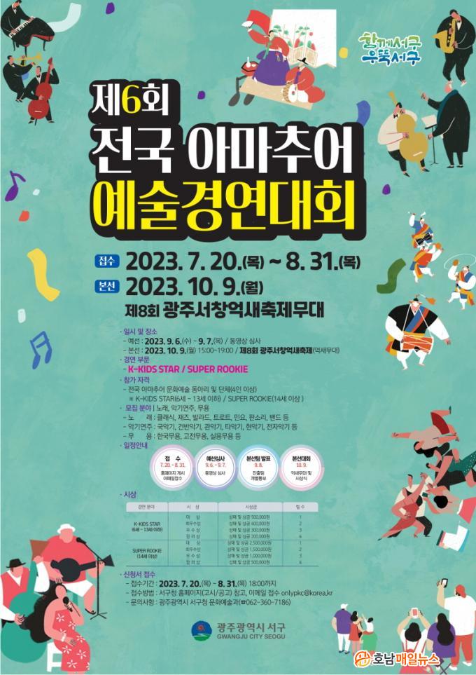 ¸ðÁý ÀÌÈÄ 9¿ù ¿¹¼±À» °ÅÃÄ ÃÑ 20ÆÀÀÌ º»¼±¿¡ ÁøÃâÇÏ°Ô µÇ°í, º»¼±´ëȸ´Â 10¿ù Á¦8ȸ ±¤Áּâ¾ï»õÃàÁ¦¿¡¼ ¿¸°´Ù. °æ¿¬´ëȸ¿¡¼´Â ´ë»óºÎÅÍ Àå·Á»ó±îÁö ½Ã»óÇϰí, K-KIDS STAR ´ë»óÀº ±¸Ã»Àå»ó ¹× »ó±Ý 50¸¸¿ø, SUPER ROOKIE ´ë»óÀº ±¸Ã»Àå»ó ¹× »ó±Ý 250¸¸¿ø µîÀ» ¹Þ°ÔµÈ´Ù. ½ÅûÀº ¼±¸Ã» ´©¸®Áý(www.seogu.gwangju.kr)¿¡ ÀÖ´Â ½Åû¼¿Í 5ºÐ À̳»ÀÇ °ø¿¬¿µ»óÀ» ÷ºÎÇØ À̸ÞÀÏ(onlypkc@korea.kr)·Î Á¦ÃâÇÏ¸é µÈ´Ù.