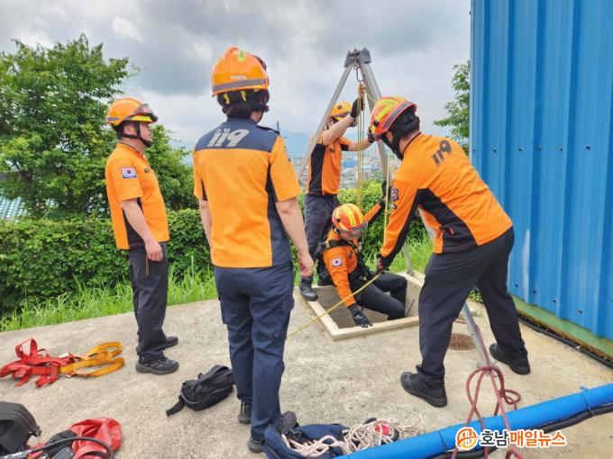 À̹ø ÈÆ·ÃÀº ¸ÇȦ µî ¹ÐÆó°ø°£ ¼Ó ÀÎ¸í±¸Á¶¹æ¹ý °±¸ ¹× ´ëó´É·Â ¼÷´Þ°ú À¯»çÇÑ Àå¼Ò¿¡¼ÀÇ ¸ÇȦ±¸Á¶ Àåºñ¸¦ Ȱ¿ëÇÑ ÇöÀå´ëÀÀ´É·Â ÇÔ¾çÀ» À§ÇØ ½Ç½ÃµÆ°í °Áø¼Ò¹æ¼ Á÷¿ø 17¸í°ú °Áø»ó¼öµµ»ç¾÷¼Ò Á÷¿ø 3¸í°ú ÇÔ²² ÃÑ 20¸íÀÌ ÈÆ·ÃÀ» ½Ç½ÃÇß´Ù.