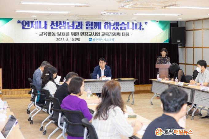 13ÀÏ ±¤Áֽñ³À°Ã»¿¡ µû¸£¸é À̹ø °£´ãȸ¿¡¼´Â ´Ù¾çÇÑ Çб³ ÇöÀå À̾߱⸦ µè±â À§ÇØ ¸¶·ÃµÆ´Ù. ½ÇÁ¦ Çб³¿¡¼ ±³»çµéÀÌ °Þ°í ÀÖ´Â Çлý »ýȰ±³À°°ú Çкθð °ü°è »çÀÌ¿¡¼ ºñ·ÔµÈ ±³±Ç ÇÇÇØ »ç·Ê, »õ·Ó°Ô ¼ö¸³µÇ°Å³ª °³¼±µÆÀ¸¸é ÇÏ´Â ¿©·¯ ±³±Çº¸È£ ´ëÃ¥ µîÀ» ÇÔ²² ³íÀÇÇß´Ù.