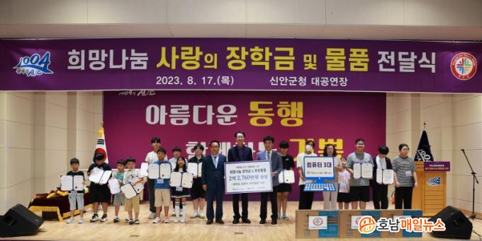 À̳¯ Àü´Þ½Ä¿¡´Â 1004¼¶ ½Å¾È±º 20¸íÀÇ ÀåÇлý¿¡°Ô ¿ù 5¸¸ ¿ø¾¿ 2³â°£ 2,400¸¸ ¿ø ÀåÇбݰú 3¸í¿¡°Ô 120¸¸ ¿ø »ó´çÀÇ ÄÄÇ»Å͸¦ Àü´ÞÇÏ¿´°í, ½Å¾È±ºº¹ÁöÀç´Ü(ÀÌ»çÀå ÀÌÃæ¸¸)¿¡ 2¾ï ¿ø »ó´çÀÇ »ýÇÊǰÀ» Ãë¾à°èÃþ¿¡ Áö¿øµÇµµ·Ï ÁöÁ¤ ±âŹÇß´Ù.
