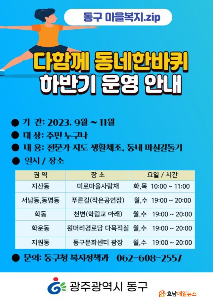 ¡®´ÙÇÔ²² µ¿³× ÇѹÙÄû¡¯´Â ¡®µ¿±¸ ¸¶À»º¹Áö. zip¡¯ ÀÏȯÀ¸·Î Àϻ󿡼 ÀÌ¿ô°ú ÇÔ²² ¿îµ¿ÇÏ´Â ºÐÀ§±â¸¦ Á¶¼ºÇϰí, ÁֹΠ°£ ¿¬´ë°¨ Çü¼ºÀ» À§ÇØ ±âȹµÆ´Ù. Àü¹®°¡ ÁöµµÇÏ¿¡ ¸¶À» ±¤Àå µî ÁֹΠ´Ù¼ö ÁýÇÕ Àå¼Ò¿¡¼ °Ç° üÁ¶¸¦ ÇÏ°í µ¿³× ¸¶½ÇÀ» ÇÏ°Ô µÈ´Ù.