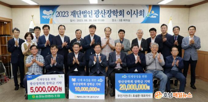 [È£³²¸ÅÀÏ´º½º = ±è±Ý´ö ±âÀÚ] Àç´Ü¹ýÀÎ ±¤»êÀåÇÐȸ°¡ 30ÀÏ ¿ÀÀü ±¤»ê±¸Ã» 2Ãþ »óȲ½Ç¿¡¼ 2023³â Á¦2Â÷ ÀÌ»çȸ¸¦ °³ÃÖÇÑ °¡¿îµ¥, ȸÀÇ¿¡ ¾Õ¼ Áö¿ª ÀÎÀç À°¼ºÀ» À§ÇÑ ÀåÇÐ±Ý Àü´Þ½ÄÀÌ ¿·È´Ù.