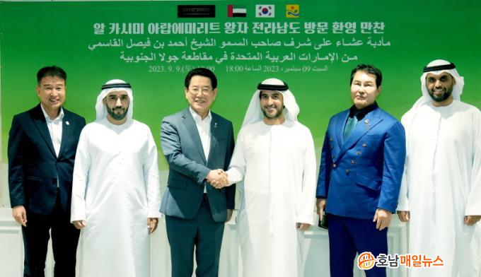Àü³²µµ´Â ¾Æ¶ø¿¡¹Ì¸®Æ®(UAE)ÀÇ ¼ÎÀÌÅ© ¾ÆÈå¸Þµå ºó ÆÄÀÌ»ì ¾Ë Ä«½Ã¹Ì ¿ÕÀÚ(·Î¾âÆÐ¹Ð¸®¿ÀÇǽº ¼ÒÀ¯ÁÖ) ÀÏÇàÀÌ Áö³ 9ÀÏ Àü³²À» ¹æ¹®ÇØ ÇØ³² ¼Ö¶ó½Ãµµ¿Í °Áø ½º¸¶Æ®ÆÊÀ» µÑ·¯º¸°í, »óÈ£Çù·Â ¹æ¾ÈÀ» ³íÀÇÇß´Ù°í ¹àÇû´Ù.
