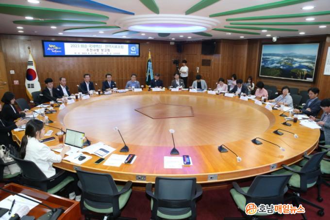 º¸°íȸ¿¡´Â Æ÷·³ °ü·Ã ÁÖ¿ä ÀλçµéÀÌ Âü¼®ÇÏ¿´°í, 11¿ù 16, 17ÀÏ 2Àϰ£ ȼø¿¡¼ ¿¸®´Â ¡®2023 ȼø±¹Á¦¹é½Å¡¤¸é¿ªÄ¡·áÆ÷·³¡¯(ÀÌÇÏ Æ÷·³)ÀÇ ÃßÁø»çÇ×À» Áß°£ Á¡°ËÇß´Ù.
