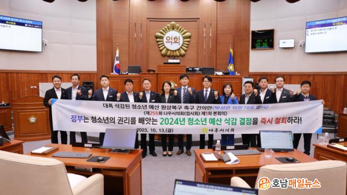 ³ªÁÖ½ÃÀÇȸ´Â À̹ø °ÇÀǾÈÀ» ÅëÇØ ¡®Á¤ºÎ´Â û¼Ò³âÀÇ ±Ç¸®¸¦ »©¾Ñ´Â 2024³â û¼Ò³â ¿¹»ê »è°¨ °áÁ¤À» Áï½Ã öȸÇÒ °Í¡¯°ú ¡®Á¤ºÎ´Â ¹Ì·¡»çȸ ÁÖÀΰøÀΠû¼Ò³âµéÀÇ °Ç°ÇÑ ¼ºÀåÀ» À§ÇÑ Ã»¼Ò³â Á¤Ã¥À» Àû±ØÀûÀ¸·Î ÃßÁø¡¯ÇÒ °ÍÀ» Á¦¾ÈÇß´Ù.