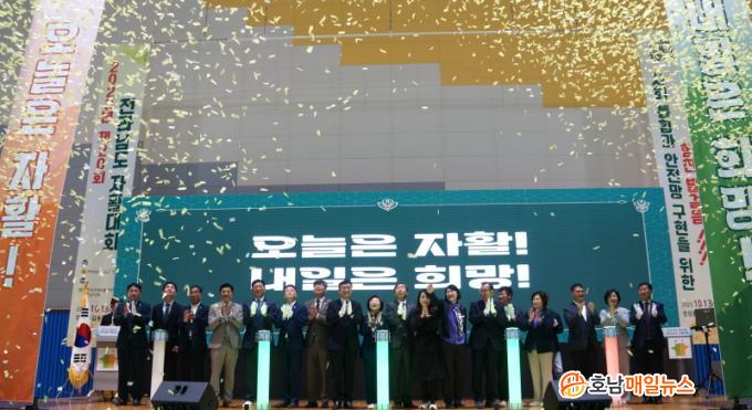 ¡®¿À´ÃÀº ÀÚȰ! ³»ÀÏÀº Èñ¸Á!¡¯À̶õ ÁÖÁ¦·Î ¿¸° À̹ø ÀÚȰ´ëȸ´Â 2ºÎ·Î ÁøÇàµÆ´Ù. 1ºÎ ±â³ä½Ä¿¡´Â ÀÚȰ»ç¾÷¿¡ ±â¿©ÇÑ °ø·Î·Î ¹Î°£ÀÎ 12¸í°ú °ø¹«¿ø 3¸íÀÌ µµÁö»ç ǥâÀ» ¼ö»ó, 46¸íÀÌ Çѱ¹Áö¿ªÀÚȰ¼¾ÅÍÇùȸ Àü³²ÁöºÎÀå ǥâÀ» ¼ö»óÇß´Ù. 2ºÎ Çà»ç¿¡´Â 22°³ ½Ã±º¿¡¼ ¸ðÀÎ ÀÚȰÀεéÀÌ È²·æ° °¡À»²ÉÃàÁ¦¸¦ Áñ±â´Â ½Ã°£À» °¡Á³´Ù.