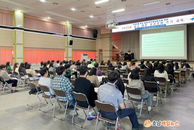 À̳¯ ±³À°Àº ´©±¸³ª ÀÌÇØÇÒ ¼ö ÀÖ´Â ½±°í ¹Ù¸¥ °ø°ø¾ð¾î »ç¿ëÀ» ÅëÇØ ½Ã¹ÎÀÇ Á¤Ã¥ Á¤º¸ ÀÌÇØµµ¿Í Á¢±Ù¼ºÀ» ³ôÀ̰íÀÚ ¸¶·ÃÇß´Ù. ±¹¸³±¹¾î¿ø ±¹¾î¹®È¿øÀ¸·Î ÁöÁ¤µÈ Àü³²´ëÇб³ ±³À°Çõ½Åº»ºÎ À̼öÈ °»ç°¡ ¾î¹ý ¿À·ù ¹®Àå ¹× ¾îÈÖ ¼øÈ, Çѱ۸ÂÃã¹ý ¹× ¿Ü·¡¾î Ç¥±â¹ý µî ¾î¹®±Ô¹ü ¾Ë¾Æº¸±â, À߸øµÈ Ç¥Çö °íÃľ²±â µî ½Ç¹« Áß½ÉÀ¸·Î ±³À°Çß´Ù. À̳¯ ±³À°¿¡ À̾î 11¿ù¿¡µµ °ø°ø¾ð¾î ±³À°À» ÇÒ °èȹÀÌ´Ù.