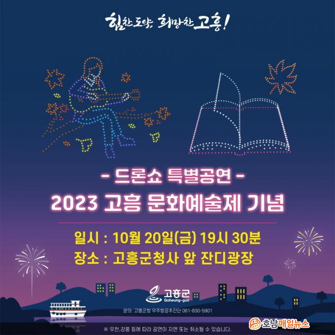 À̹ø Ưº°°ø¿¬Àº µå·Ð 500´ë ±Ô¸ð·Î ¡®2023 °íÈï ¹®È¿¹¼úÁ¦¡¯ÀÇ ¡ã°³¸·½Ä ¹× ÃàÇϰø¿¬ ¡ãµ¾ÀÚ¸® ¿µÈÁ¦ µî ´Ù¾çÇÑ º¼°Å¸®¿Í ÇÔ²² Áö¿ªÁÖ¹ÎÀÌ °ø°¨Çϸç Áñ±æ ¼ö ÀÖ´Â ÄÜÅÙÃ÷·Î ±¸¼ºµÈ´Ù. ¶ÇÇÑ, 21ÀÏ 20½Ã¿¡´Â ³ìµ¿Ç׿¡¼ ¡®°¡À»Ç³°æ¡¯À» ÁÖÁ¦·Î Á¤±â°ø¿¬ÀÌ ÁøÇàµÈ´Ù.