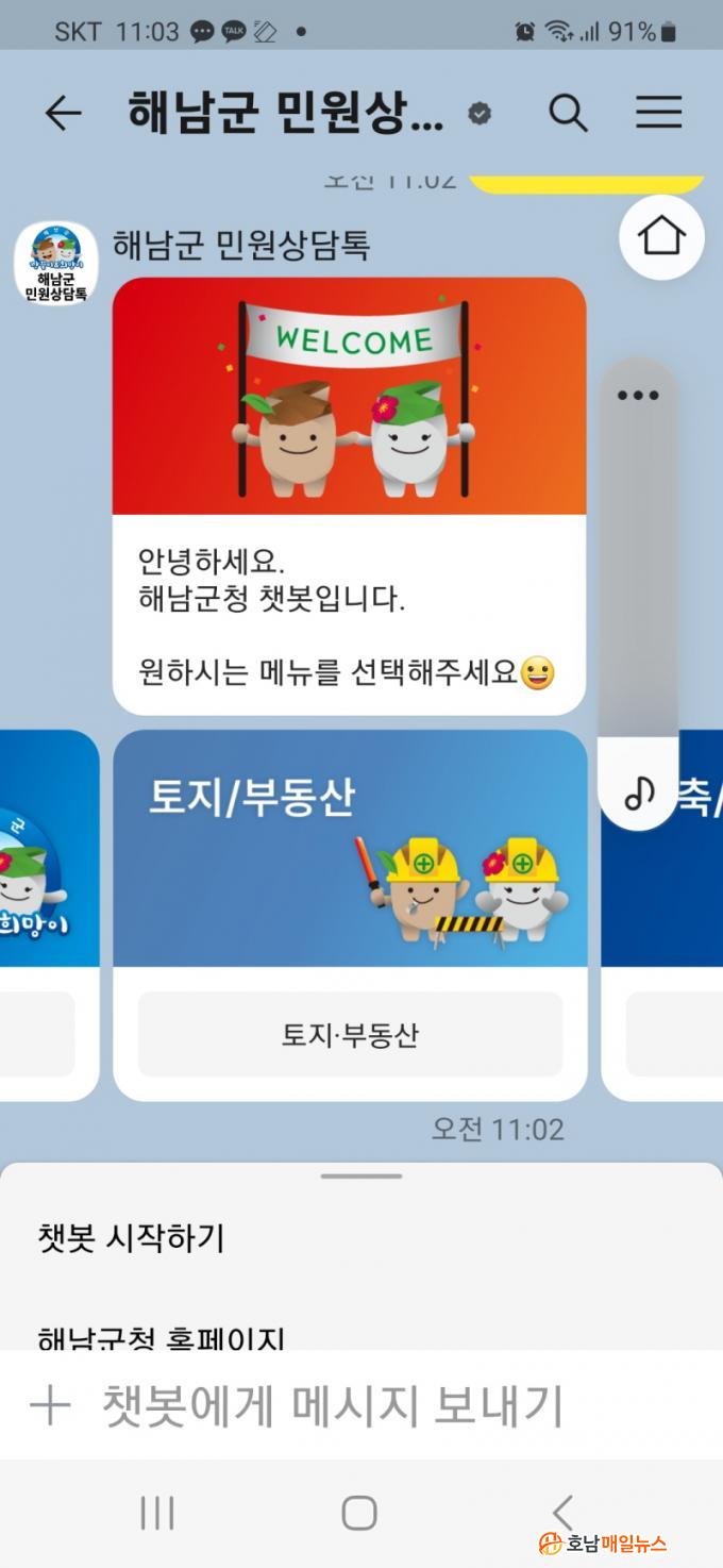 Á¢¼ÓÇÏ·Á¸é ÈÞ´ëÆù īī¿ÀÅå¿¡¼¡®Çس²±º ¹Î¿ø»ó´ãÅ塯À» °Ë»öÇÏ¿© Ä£±¸¸ñ·Ï¿¡ Ãß°¡ÇÑ µÚ¡®Ãªº¿ ½ÃÀÛÇϱ⡯ ¸Þ´º¸¦ ´©¸¥ ÈÄ ¿øÇÏ´Â ºÐ¾ß¸¦ ´Ü°èÀûÀ¸·Î Ŭ¸¯ÇÏ¿© ³»¿ëÀ» È®ÀÎÇϰųª ã°í ½ÍÀº ³»¿ëÀ» Á÷Á¢ ÀÔ·ÂÇÏ¿© ´äº¯À» È®ÀÎÇÒ ¼ö ÀÖ´Ù. 꺿 ¼ºñ½º·Î ÇØ°áÇÒ ¼ö ¾ø´Â »çÇ×Àº ´ã´çÁ÷¿ø Àüȵµ ¿¬°áµÉ ¼ö ÀÖµµ·Ï ±â´ÉÀ» Ãß°¡Çß´Ù.