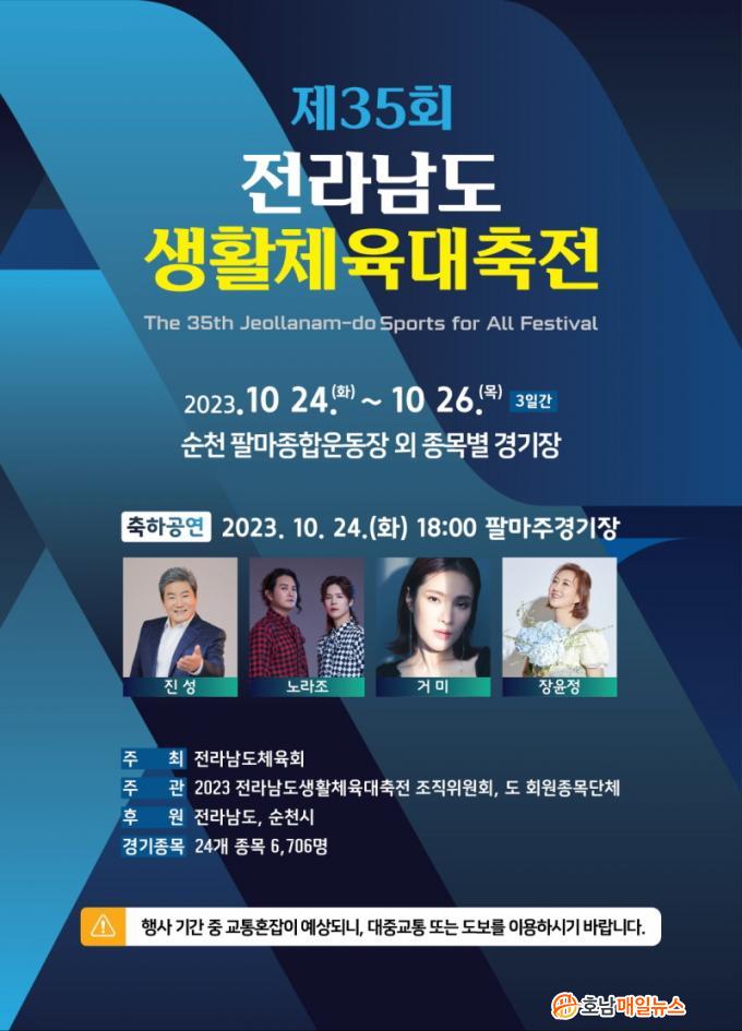 À̹ø ´ëȸ´Â¡®µµ¾àÇÏ´Â ÀÏ·ù¼øÃµ ÇÔ²²¿©´Â ÇູÀü³²¡¯À» ÁÖÁ¦·Î Àü¶ó³²µµ¿Í ¼øÃµ½Ã°¡ ÈÄ¿øÇϰí, Àü³²Ã¼À°È¸ ÁÖÃÖ ¹× Àü³²»ýȰüÀ°´ëÃàÀüÁ¶Á÷À§, °¢ Á¾¸ñ´ÜüÀÇ ÁÖ°üÇÏ¿¡ Àü³² 22°³ ½Ã¡¤±º 7,000¿© ¸íÀÇ ¼±¼ö°¡ Âü°¡ÇÑ´Ù. 24ÀÏ ¿ÀÈÄ 4½Ã 30ºÐ ÆÈ¸¶ÁÖ°æ±âÀå¿¡¼ °³È¸½ÄÀ» ½ÃÀÛÀ¸·Î 26ÀϱîÁö ÆÈ¸¶Á¾ÇտÀå ¹× Á¾¸ñº° °æ±âÀå¿¡¼ 24°³ Á¾¸ñ(Á¤½Ä 22, ¹Î¼Ó°æ±â 1, ½Ã¹ü 1)ÀÇ °æ±â°¡ ÆîÃÄÁø´Ù. ¶ÇÇÑ, °³È¸½ÄÀÇ ½ÄÈÄÇà»ç¿¡¼´Â ÀåÀ±Á¤, Áø¼º, °Å¹Ì, ³ë¶óÁ¶ µî ÀαⰡ¼öµéÀÇ ÃàÇϰø¿¬ÀÌ À̾îÁø´Ù.
