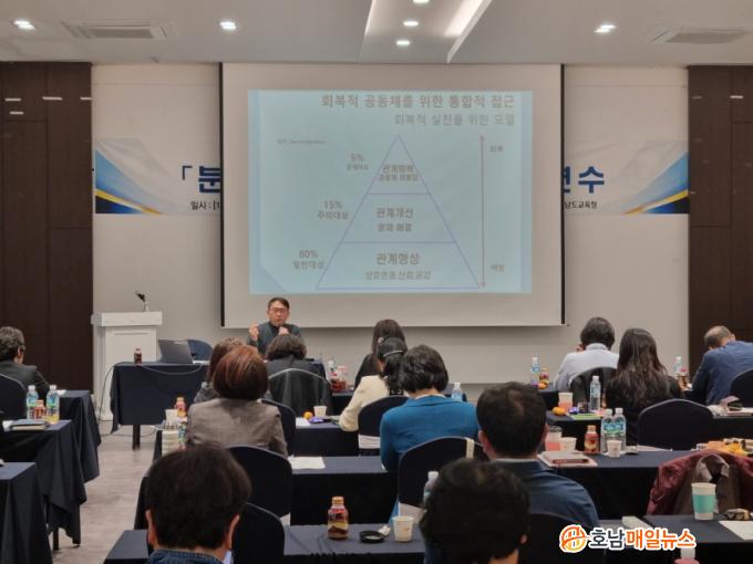 ½ÉÀÇÀ§¿øÈ¸ ºÐÀïÁ¶Á¤ À§¿ø°ú Çб³Æø·Â ¾÷¹«´ã´çÀÚ, »ó´ã±³»ç µî 60¿© ¸íÀ» ´ë»óÀ¸·Î ÇÑ À̹ø ¿¬¼ö´Â Çб³Æø·Â »ç¾È ó¸® °úÁ¤¿¡¼ °¥µî ÇØ°á ¹× ºÐÀïÁ¶Á¤ Àü¹®¿ª·®À» °ÈÇϱâ À§ÇØ ¸¶·ÃµÆ´Ù.