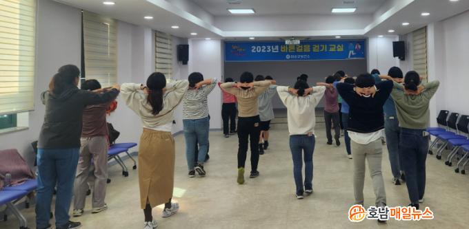 ¡®¹Ù¸¥°ÉÀ½ °È±â ±³½Ç¡¯¿¡¼´Â Àü¹® °È±â °»ç ÁöµµÇÏ¿¡ °ÉÀ½ ½Ã¹ü(¿öÅ· Å×½ºÆ®)°ú ³ÐÀû´Ù¸®°üÀý(°í°üÀý) ¹× ü·Â °È ¿îµ¿ µîÀ¸·Î Áö¿ªÁÖ¹ÎÀÇ ±âÃÊü·ÂÀ» ³ô¿´´Ù.