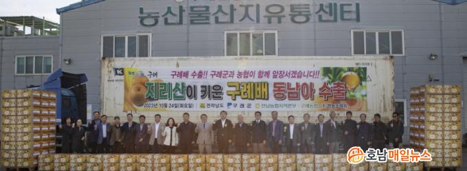 ³ó»ê¹° ±¹³» °¡°Ý ¾ÈÁ¤°ú ³ó°¡ ¼Òµæ Áõ´ë¸¦ À§ÇØ Àû±ØÀûÀÎ ¼öÃâ Àå·Á Á¤Ã¥À» ÆîÄ¡´Â ±¸·Ê±ºÀº ±¸·Ê±º ÀÇȸ, ±¸·Ê³óÇù ÀÓÁ÷¿ø°ú »ý»ê³ó¾÷Àΰú ÇÔ²² 2023³â 10¿ù 24ÀÏ ±¸·Ê³óÇù»êÁöÀ¯Åë¼¾ÅÍ(APC)¿¡¼ ±¸·Ê ¹è º£Æ®³² ¼öÃâ »óÂ÷½ÄÀ» °¡Á³´Ù.