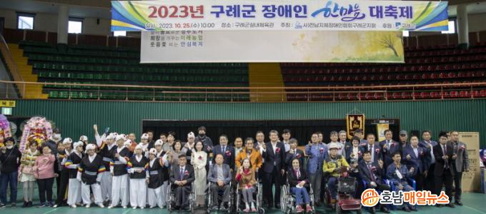 ±¸·Ê±ºÀÌ Áö¿øÇϰí Àü³²ÁöüÀå¾ÖÀÎÇùȸ ±¸·Ê±ºÁöȸ(ÁöȸÀå ÀåÀç¼·)°¡ ÁÖÃÖÇÑ À̹ø Çà»ç¿¡´Â Áö¿ª ³» Àå¾ÖÀΰú °¡Á·, °ü·Ã±â°ü Á¾»çÀÚ µî 450¿© ¸íÀÌ Âü¼®Çß´Ù.