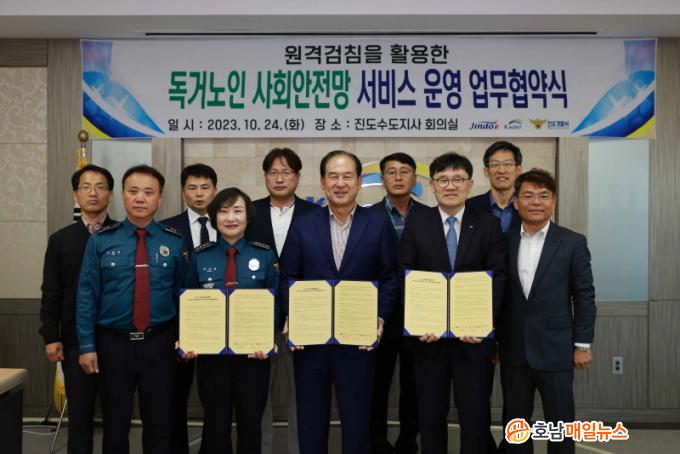 À̳¯ Çù¾à½ÄÀº Áøµµ±º°ú Áøµµ°æÂû¼, Áøµµ¼öµµÁö»ç 3°³ ±â°üÀÌ Âü¿©ÇØ ¿ø°Ý°ËħÀ» Ȱ¿ëÇÑ µ¶°Å³ëÀÎ »çȸ¾ÈÀü¸Á ¼ºñ½º ¿î¿µ µîÀ» ±¸ÃàÇϱâ À§ÇØ ¸¶·ÃµÆ´Ù.