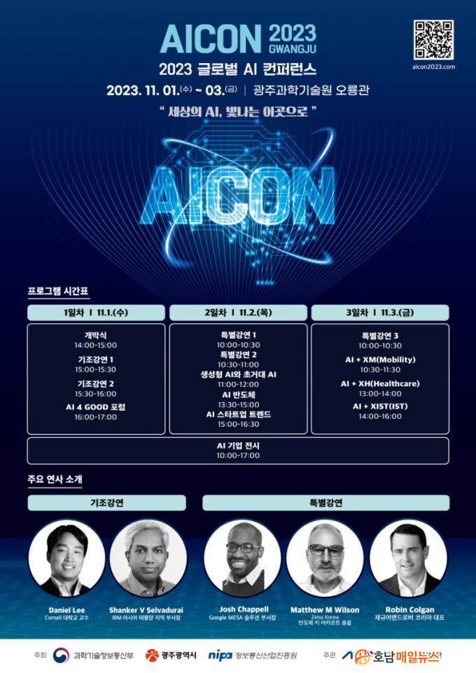 ±¤ÁÖ±¤¿ª½Ã(½ÃÀå °±âÁ¤)´Â ±¹Á¦ÀΰøÁö´É(AI)Çмú´ëȸÀÎ ¡®Á¦3ȸ ¾ÆÀÌÄÜ(AICON) ±¤ÁÖ 2023¡¯À» ¿À´Â 11¿ù 1ÀϺÎÅÍ 3ÀϱîÁö ±¤ÁÖ°úÇбâ¼ú¿ø ¿À·æ°ü¿¡¼ °³ÃÖÇÑ´Ù.
