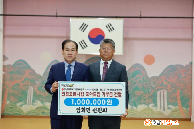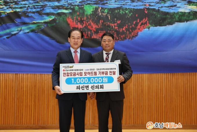 [È£³²¸ÅÀÏ´º½º = ±è±Ý´ö ±âÀÚ] Áøµµ±º »çȸ´ÜüÀÎ ±º³»¸é ½ÉÁ×ȸ(ȸÀå ¹éÀçÇö), ÀÇ½Å¸é ½ÅÀÇȸ(ȸÀå ¹Ú±ÙÈÖ), ÀÓȸ¸é ¼±ÁøÈ¸(ȸÀå °¾çÈ£), Áö»ê¸é µ¿¹éȸ(ȸÀå ÇѺ´¿µ)°¡ ¾î¸£½Å À§¾ÈÀÜÄ¡¸¦ ÅëÇØ ¿¬ÇÕ¸ð±Ý »ç¾÷ ¡®¸ð¾Æµå¸²¿¡ ±âºÎ±Ý °¢ 100¸¸¿øÀ» ±âŹÇß´Ù.