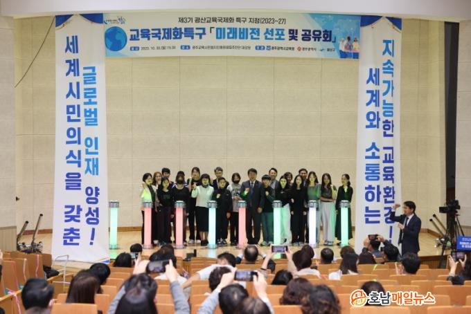 ÀÌÁ¤¼± ±³À°°¨Àº ¡°À̹ø ¹Ì·¡ºñÀü ¼±Æ÷ ¹× °øÀ¯È¸¸¦ ½ÃÀÛÀ¸·Î °ü·Ã »ç¾÷ÀÌ ¼º°øÀûÀ¸·Î ÃßÁøµÆÀ¸¸é ÇÑ´Ù¡±¸ç ¡°±¤ÁÖ ÇлýµéÀÌ ¹ÎÁÖ, ÀαÇ, ÆòÈ, ¹®È ´Ù¾ç¼º µî Àηù º¸ÆíÀû °¡Ä¡¸¦ ÀÌÇØÇϰí, À̸¦ ±¹Á¦¹«´ë¿¡¼ ½ÇõÇÒ ¼ö ÀÖ´Â ±Û·Î¹ú ÀÎÀç·Î ¼ºÀåÇÒ ¼ö ÀÖµµ·Ï ÃÖ¼±À» ´ÙÇϰڴ١±°í ¸»Çß´Ù.