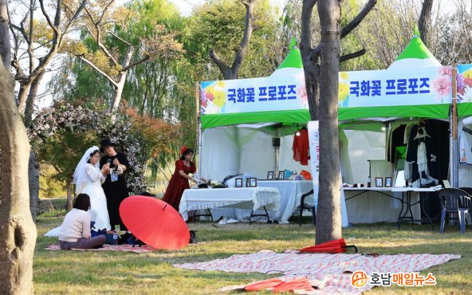 ¡®±¹È²É ÇÁ·¯Æ÷Á¿¡¼´Â °ü¶÷°´µé¿¡°Ô ¹«·á·Î µå·¹½º¿Í ¼öÆ®, ±¹È·Î ¸¸µç ºÎÄɸ¦ ´ë¿©ÇØÁÖ°í ÀÖÀ¸¸ç ±¹È·Î Àå½ÄµÈ Á¶Çü¹° ¾Õ¿¡¼ Àü¹® »çÁøÀÛ°¡°¡ »çÁø ÃÔ¿µÀ» ÇØ ¸¶Ä¡ ½ÅÈ¥ºÎºÎ°¡ ¿þµù ÃÔ¿µÀ» ÇÏ´Â °Í°ú °°Àº »ý»ýÇϸ鼵µ »ç¶û ³ÑÄ¡´Â üÇèÀ» ÇÒ ¼ö ÀÖ´Ù.