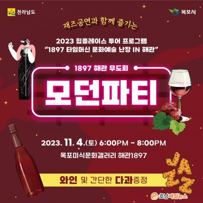 ÇÑÆí, Àü¶ó³²µµ °ø¸ð»ç¾÷À¸·Î ¼±Á¤µÇ¾î ÃßÁøÇÏ´Â 2023 ÈüÇ÷¹À̽º Åõ¾î ÇÁ·Î±×·¥Àº ¸ñÆ÷¹Ì½Ä¹®È°¶·¯¸® ÇØ°ü 1897À» Ȱ¿ëÇÑ Çà»çÀÌ´Ù. 1ȸÂ÷ Çà»ç¿¡´Â ¡®°¡¼ö º¯Áø¼·°ú ´À³¢´Â °¡À» À½¾Çȸ¡¯¸¦ ÁÖÁ¦·Î Åë±âŸ ¹× Ŭ·¡½Ä °ø¿¬ µî 7080¼¼´ë¿¡°Ô Ãß¾ïÀÇ ÀåÀ» ¸¶·ÃÇϰí MZ¼¼´ë¿¡°Ô´Â »õ·Î¿î Ãß¾ïÀ» ¼±»çÇÏ´Â °ø¿¬À» ¼±º¸¿´´Ù.