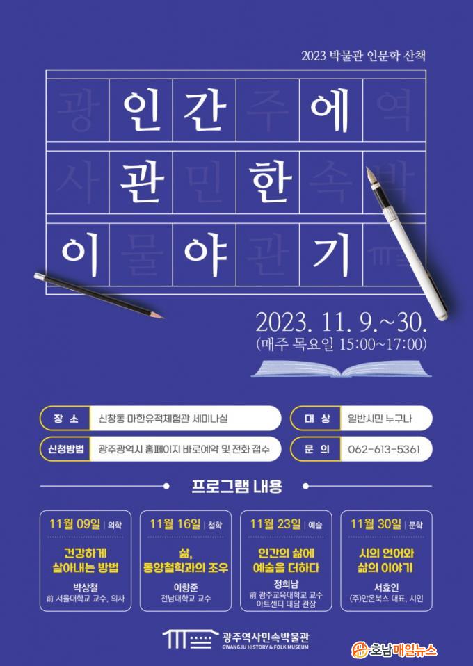 ¸ðµç °Á´ »çÀü ¿¹¾àÀ» ÅëÇØ Âü¿©ÇÒ ¼ö ÀÖ´Ù. Á¢¼ö´Â ±¤ÁÖ±¤¿ª½Ã ȨÆäÀÌÁö(www.gwangju.go.kr)¿Í ±¤ÁÖ¿ª»ç¹Î¼Ó¹Ú¹°°ü ȨÆäÀÌÁö(www.gwangju.go.kr/gjhfm)¸¦ ÅëÇØ 2ÀÏ ¿ÀÀü 9½ÃºÎÅÍ ¼±Âø¼øÀ¸·Î ÁøÇàµÈ´Ù. ±¤ÁÖ¿ª»ç¹Î¼Ó¹Ú¹°°üÀº ÀüÈ ½Åû(062-613-5361)µµ º´ÇàÇØ ÀÎÅÍ³Ý Á¢±ÙÀÌ ¾î·Á¿î ¿¹ºñ ¼ö°»ýÀÇ ÆíÀǸ¦ µµ¸ðÇÑ´Ù. ¼ö°»ý Á¤¿øÀº 100¸íÀ̸ç, Âü°¡ºñ´Â ¹«·á´Ù.