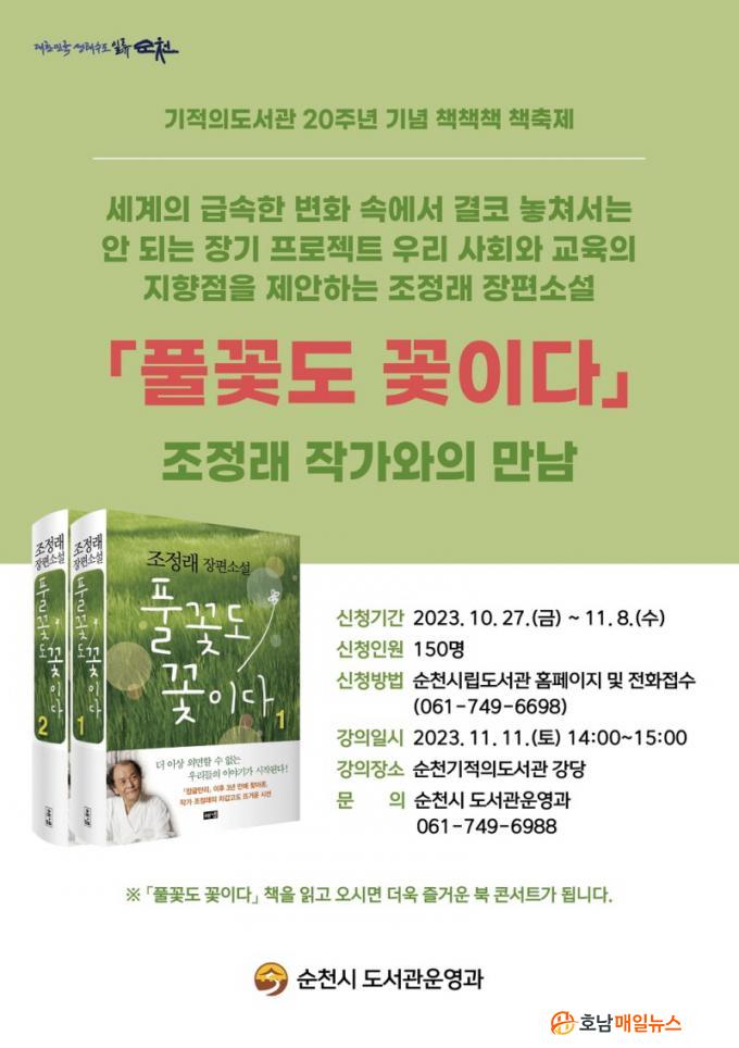 Á¶Á¤·¡ ÀÛ°¡¿ÍÀÇ ¸¸³²¿¡ °ü½É ÀÖ´Â ½Ã¹ÎÀº 8ÀϱîÁö ÀüÈ(061-749-6698) ¶Ç´Â ¼øÃµ½Ã¸³µµ¼°ü ´©¸®Áý(https://library.suncheon.go.kr/)¿¡¼ ½ÅûÇÏ¸é µÈ´Ù.