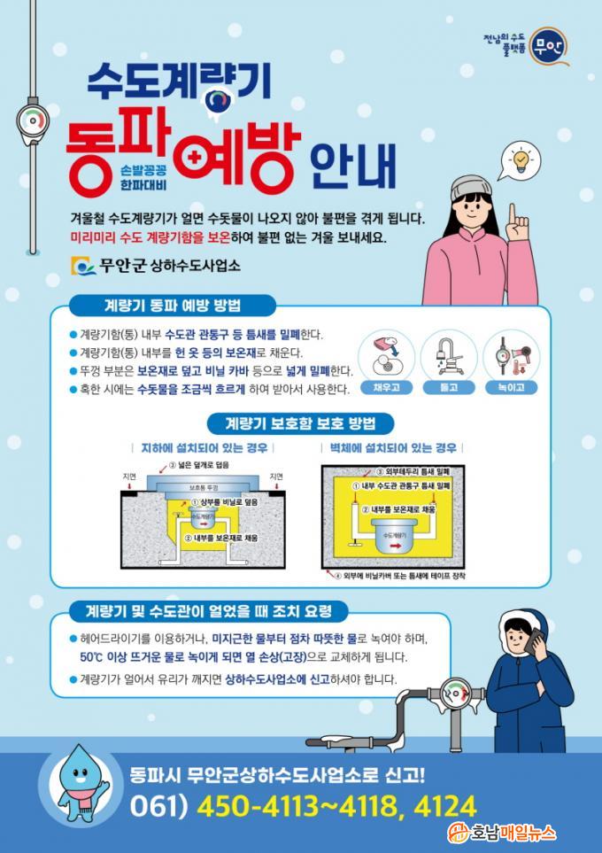 »óÇϼöµµ»ç¾÷¼Ò °ü°èÀÚ´Â ¡°µ¿ÆÄ ÇÇÇØ ¹æÁö¸¦ À§ÇØ Çå ¿Ê µîÀÇ º¸¿ÂÀç·Î °è·®±âÅëÀ» ä¿ö Âù °ø±â°¡ ½º¸çµéÁö ¾Êµµ·Ï Çϰí, ÇÑÆÄ°¡ Áö¼ÓµÉ ¶§´Â ¼öµ¾¹°À» Á¶±Ý¾¿ È帣°Ô ÇØ µ¿ÆÄ¸¦ ¿¹¹æÇÏ¿©¾ß Çϸç, ¸¸¾à °è·®±â°¡ ¾ó¾úÀ» °æ¿ì Çì¾îµå¶óÀ̾ ÀÌ¿ëÇϰųª, ¹ÌÁö±ÙÇÑ ¹°ºÎÅÍ Á¡Â÷ µû¶æÇÑ ¹°À» ÀÌ¿ëÇØ ³ì¿©¾ß ÇÑ´Ù¡±°í ´çºÎÇß´Ù.