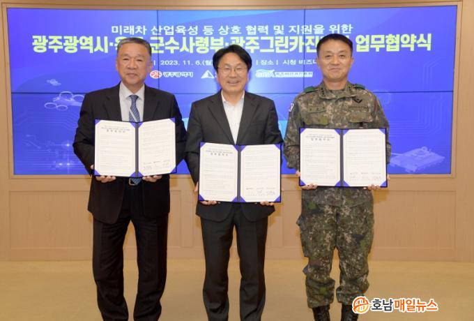 ±¤ÁÖ±¤¿ª½Ã(½ÃÀå °±âÁ¤)´Â 6ÀÏ ½Ãû ºñÁî´Ï½º·ë¿¡¼ À°±º ±º¼ö»ç·ÉºÎ, ±¤Áֱ׸°Ä«ÁøÈï¿ø°ú ÇÔ²² ±º¼ö»ê¾÷°ú ¿¬°èÇÑ ¹Ì·¡Â÷»ê¾÷À» À°¼ºÇϰí Ãë¾àÇÑ Áö¿ª ±º¼ö»ê¾÷À» Áö¿øÇÏ´Â ³»¿ëÀÇ ¡®¹Ì·¡Â÷»ê¾÷ À°¼º µî »óÈ£ Çù·Â ¹× ¹ßÀüÀ» À§ÇÑ ¾÷¹«Çù¾à¡¯À» ü°áÇß´Ù.
