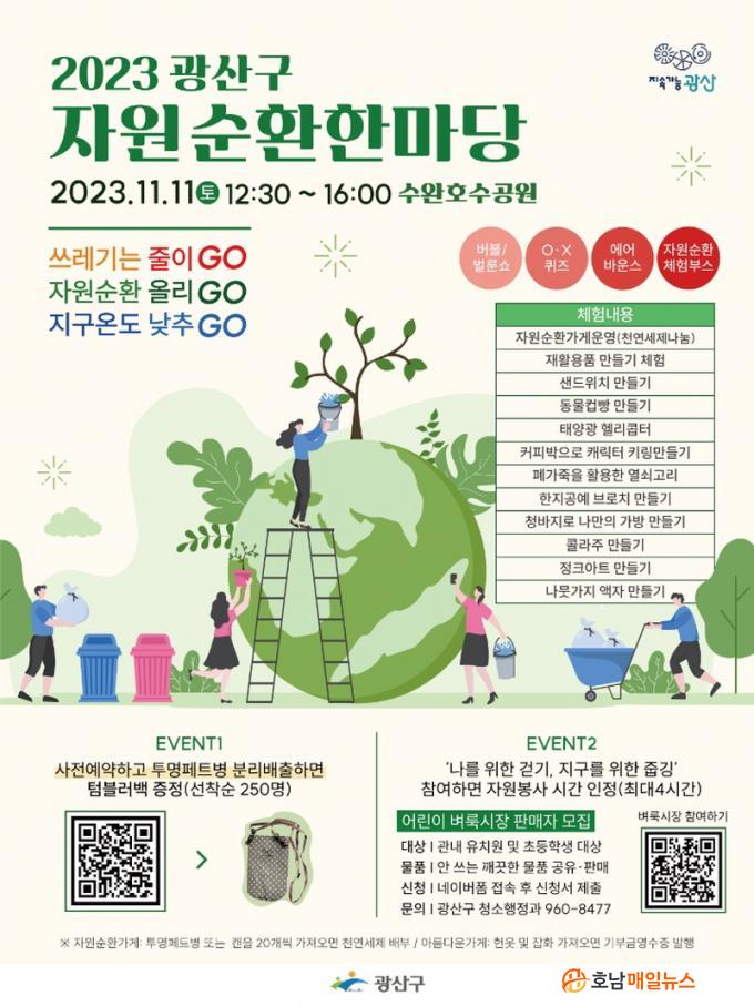 ±¤ÁÖ±¤¿ª½Ã ÀÚ¿øÀçȰ¿ëÇùȸ´Â Åõ°Ô´õ±¤»ê ³ª´®¹®ÈÀç´Ü¿¡ ±âºÎ±ÝÀ» Àü´ÞÇÒ ¿¹Á¤ÀÌ´Ù. ¿ÃÇØ ±¤»ê±¸°¡ ÃßÁøÇÑ ¾²·¹±â ÁÙÀ̱⠽ùεµÀü´Ü Ȱµ¿, ÀÚ¿ø¼øÈ¯Çؼ³»ç ±³À°È°µ¿ µî ÀÚ¿ø¼øÈ¯ ¼º°ú º¸°í ÀÚ¸®µµ ¸¶·ÃÇÑ´Ù. ÀÚ¿ø¼øÈ¯ üÇèÀº »÷µåÀ§Ä¡ ¸¸µé±â, µ¿¹°ÄÅ»§ ¸¸µé±â, ž籤 Ç︮ÄßÅÍ ¸¸µé±â, Ä¿ÇÇ¹Ú Ä³¸¯ÅÍ ¿¼è°í¸®(۸µ) ¸¸µé±â, û¹ÙÁö·Î ³ª¸¸ÀÇ °¡¹æ ¸¸µé±â µî 12°³ °üÀ» ¿î¿µÇÑ´Ù.