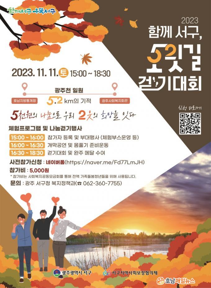¼±¸ 18°³µ¿ Áö¿ª»çȸº¸ÀåÇùÀÇü À§¿øµéÀÌ ÁÖ°üÇÏ´Â À̹ø °È±â´ëȸ´Â ±¤ÁÖõ µ¿Ãµ±³ ÇϺο¡¼ ½ÃÀÛÇØ ±¤¿î±³ ÇϺθ¦ ¹ÝȯÁ¡À¸·Î 5.2km¸¦ °È´Â Çà»ç·Î, ÁֹεéÀÇ ÀÚ¹ßÀûÀÎ Âü¿©·Î ³ª´®¹®È¸¦ È®»êÇϱâ À§ÇØ ÃßÁøµÆ´Ù.