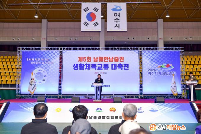 Á¤±â¸í ¿©¼ö½ÃÀåÀº ȯ¿µ»ç¸¦ ÅëÇØ ¡°¿ì¸® ³²Çؾȳ²Áß±ÇÀº üÀ°»Ó¸¸ ¾Æ´Ï¶ó °ü±¤¡¤¹®È¡¤¿¹¼úÀ» ºñ·ÔÇÑ ´Ù¾çÇÑ ºÐ¾ßÀÇ ±³·ù·Î ´õ¿í µ·µ¶ÇÑ ½Å·Ú¿Í ¿ìÁ¤À» ½×¾Æ¿Ô´Ù¡±¸ç ¡°¿ì¸® ¿µÈ£³²ÀÇ ±ä¹ÐÇÑ Çù·ÂÀÇ °á°úÀÌÀÚ µ¿¼ ÈÇÕÀ» »ó¡ÇÏ´Â ¿©¼ö~³²ÇØ °£ ÇØÀúÅͳÎÀÌ °Ç¼³µÇ¸é ¹°¸®Àû °Å¸®µµ °¡±î¿öÁ®¼ ´õ Å« ¿¡³ÊÁö¸¦ ¹ß»êÇÒ °ÍÀ¸·Î ±â´ëÇÑ´Ù¡±°í ¸»Çß´Ù.