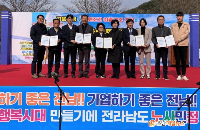 À̳¯ Çà»ç¿¡´Â À̽ſø Çѱ¹³ëÃÑ Àü³²º»ºÎ ÀÇÀå, ½Å¸í±Õ Àü³²°æ¿µÀÚÃÑÇùȸ ºÎȸÀå, ¼®µ¿Çå Àü³²°æ¿µÀÚÃÑÇùȸ ºÎȸÀå, À̼ÛÀÚ ¼ÒºñÀÚ±³À°Áß¾Óȸ Àü³²ÁöºÎ ȸÀå, ¾çÁ¤¿ ±¤ÁÖÁö¹æ °í¿ë³ëµ¿Ã»Àå, Á¤Âù±Õ Àü³²µµ µ¿ºÎÁö¿ªº»ºÎÀå µî ³ë»ç¹ÎÁ¤ °ü°èÀÚ¿Í ³ëµ¿ÀÚ µî 370¿© ¸íÀÌ Âü¼®Çß´Ù.