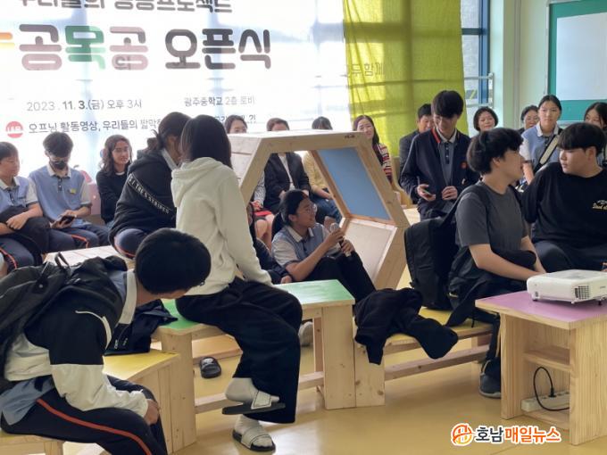¡®¿ì¸®µéÀÇ °ø°øÇÁ·ÎÁ§Æ®:³î°ø¸ñ°ø¡¯Àº Çб³ ³» À¯ÈÞ°ø°£À» ã¾Æ¼ ³îÀÌ¿Í ½°ÀÌ ÀÖ´Â °ø°£À¸·Î µðÀÚÀÎÇÏ°í ±¸¼ºÃ¢ÀÛ¹°À» ¸ñ°øÀ¸·Î ä¿ì´Â °øµ¿Çù¾÷ Ȱµ¿ÀÌ´Ù. Áö³ 5¿ùºÎÅÍ 10¿ù±îÁö ÃÑ 20ȸ±â°¡ ÁøÇàµÆÀ¸¸ç, ½° °ø°£ âÀÛ¹°·Î´Â À°°¢¸ð¾çÀÇ ¹úÁýÇüÅ Å×À̺í°ú ÀÇÀÚ, ´Ù¾çÇÑ ¸ð¾çÀ¸·Î ¹èÄ¡ÇÒ ¼ö ÀÖ´Â º¥Ä¡¸¦ û¼Ò³âµéÀÌ Á÷Á¢ ¸¸µé¾ú´Ù.