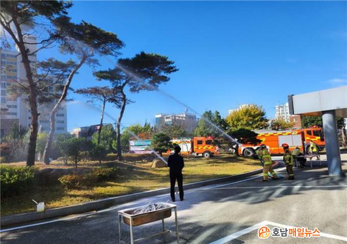 ½ÇÁ¦ û»ç¿¡ ÈÀç°¡ ¹ß»ýÇÑ °ÍÀ» °¡Á¤ÇÏ¿© Àοø ´ëÇÇ ¹× ÈÀç Áø¾Ð¿¡ ´ëÇØ ÈÆ·ÃÀ» ½Ç½ÃÇÏ¿´À¸¸ç, ´ëÇÇÀ¯µµÁ¶ÀÇ ¾È³»¿¡ µû¶ó ½Å¼ÓÇÏ°Ô ÀüÁ÷¿øÀÌ ´ëÇÇÇÏ´Â °ÍÀ» ½ÃÀÛÀ¸·Î ¿Á³» ¼ÒÈÀüÀ» ÀÌ¿ëÇÏ¿© °Ç¹° ³» ÈÀ縦 Áø¾ÐÇÏ°í ¼Òȱ⸦ »ç¿ëÇÏ´Â ¹æ¹ýÀ» ½ÇÁ¦·Î üÇèÇϸç ÈÆ·ÃÇÏ¿´´Ù.