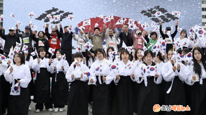 À̳¯ ´ëȸ´Â ´ëÇѵ¶¸³À» À§ÇØ ºÒÀÇ¿¡ ¸Â¼¹´ø 94³â Àü ÇлýµéÀ» ±â¸°´Ù´Â Àǹ̸¦ ´ã¾Æ¡®¼¼»óÀ» ¹Ù²Û ÀÛÀº °ÅÀε顯À̶õ ÁÖÁ¦·Î ÁøÇàµÆ´Ù. Çà»ç ù ¹®Àº ¸ñÆ÷ Á¤¸í¿©ÀÚ°íµîÇб³ ÇлýµéÀÌ ¡®µ¶µµ´Â ¿ì¸® ¶¥¡¯ ³ë·¡¿¡ ¸ÂÃá Ç÷¡½Ã¸÷À¸·Î ¿¾î Âü°¡ÀÚµéÀÇ ¹Ú¼ö¸¦ ¹Þ¾Ò´Ù. À̾î Âü°¡ÀÚµéÀÌ ´ëÇü űر⸦ ÆîÄ¡´Â ÆÛÆ÷¸Õ½º ÈÄ, º»°ÝÀûÀÎ ´ÜÃึ¶óÅæÀÌ ½ÃÀ۵ƴÙ.