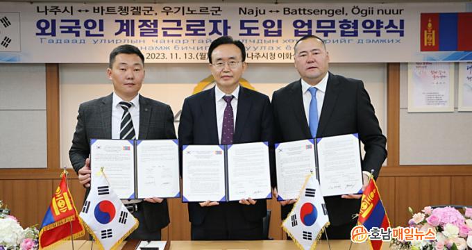 ³ªÁÖ½Ã(½ÃÀå À±º´ÅÂ)´Â 13ÀÏ ½Ãû»ç ÀÌȽǿ¡¼ ¸ù°ñ ¡®¹ÙÆ®Ãð֡¯, ¡®¿ì±â³ë¸£¡¯ ±º(ÏÛ)°ú ¿Ü±¹ÀÎ °èÀý±Ù·ÎÀÚ µµÀÔ ¾÷¹«Çù¾àÀ» ü°áÇß´Ù°í ¹àÇû´Ù.