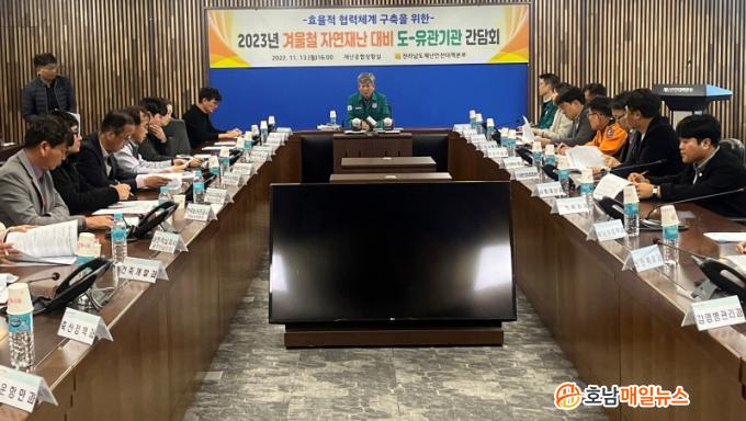 °£´ãȸ¿£ Àü³²µµ 13°³ Çù¾÷ºÎ¼¿Í Àü³²Áö¹æ°æÂûû, Çѱ¹µµ·Î°ø»ç, Çѱ¹Àü·Â°ø»ç µî 10°³ À¯°ü±â°ü °ü°èÀÚ°¡ Âü¼®Çß´Ù. °Ü¿ïö ÀÚ¿¬Àç³ ´ëÃ¥ ±â°£ µµ¹Î ¾ÈÀüÀ» À§ÇÑ »óȲ°ü¸®Ã¼°è¸¦ À¯ÁöÇϰí, ÀçÇØ ¹ß»ý ½Ã ±â°üº° ¿ªÇÒ°ú »óÈ£ Çù¾÷¹æ¾ÈÀ» ³íÀÇÇß´Ù.