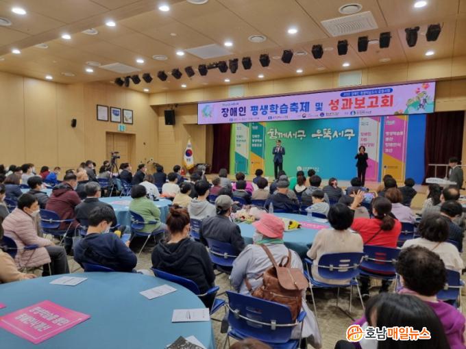 [È£³²¸ÅÀÏ´º½º = ±è±Ý´ö ±âÀÚ] ±¤ÁÖ±¤¿ª½Ã ÁÖÃÖ, ±¤ÁÖ±¤¿ª½Ã¼±¸Àå¾ÖÀκ¹Áö°üÀÌ ÁÖ°üÇÏ´Â 2023³â Àå¾ÖÀÎ Æò»ýÇнÀµµ½Ã ¿î¿µ»ç¾÷ ÇѸ¶À½ÃàÁ¦°¡ 11¿ù 25ÀÏ Åä¿äÀÏ¿¡ ¼±¸Ã» 1Ãþ ·Îºñ¿Í 2Ãþ µéºÒȦ¿¡¼ ÁøÇàµÈ´Ù.
